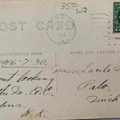 Real photo postcard of dairy barns at Michigan Agricultural College. Postmarked 1916 Lansing. Negative number is 7955. Possibly a Pesha photo.