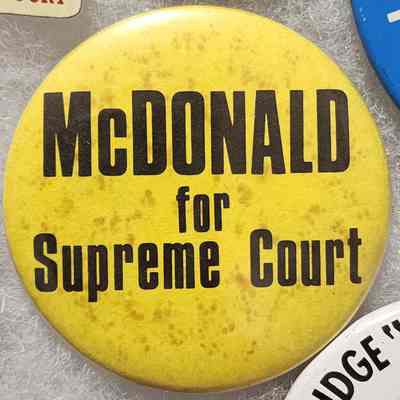 A 2.25" yellow and black political button for McDonald for Michigan Supreme Court Justice.