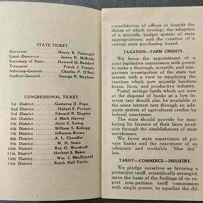 Pattengill National Progressive Party 1914 State Convention Platform Flier