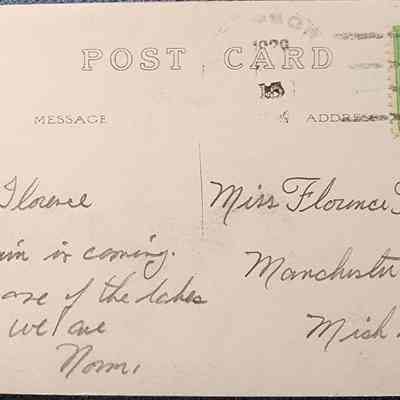 Real photo postcard of Doc and Tom Lake, Clare County, Michigan. Postally used.