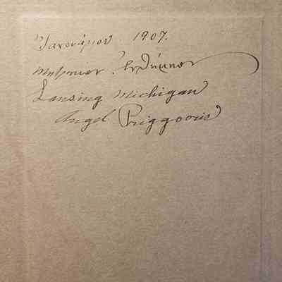 Card mounted photograph of Greek immigrant Angel Priggooris taken in 1907 by Lansing photographer Riley.