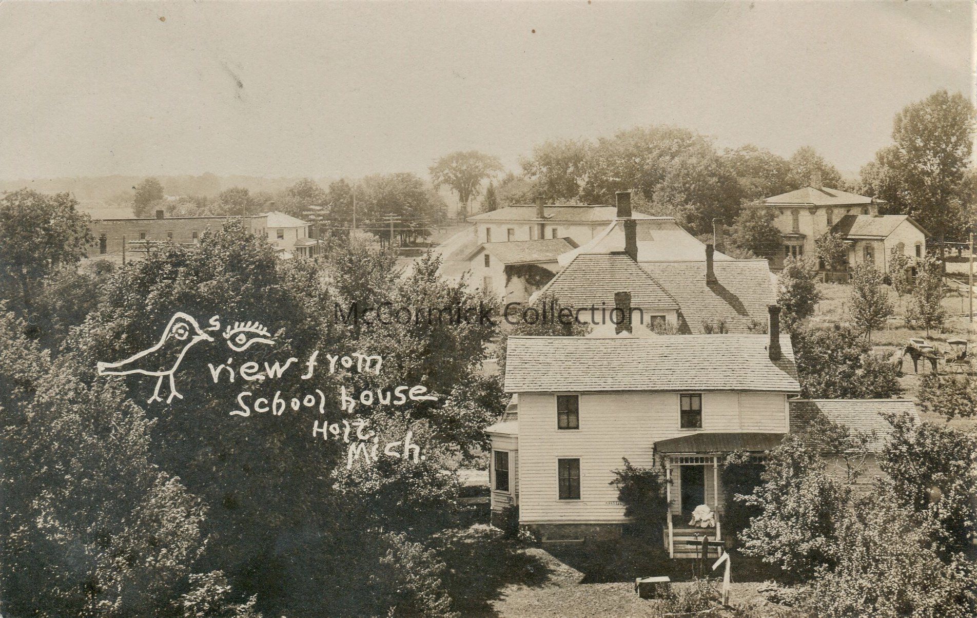 Birds Eye View from School House, Holt, Mich. Real Photo PostcardDescription