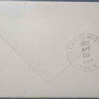 1912 Lake, Mich. postal cover and postmark. Addressed to Bush in Lake.