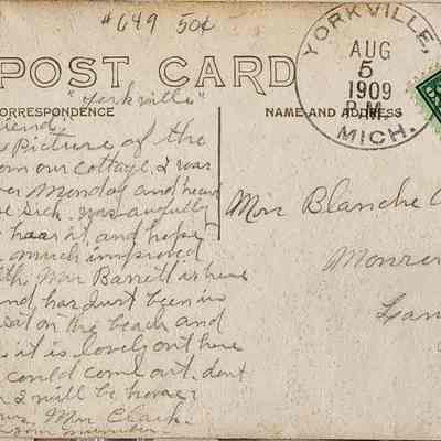 Real photo postcard of Gull Lake at Yorkville, Michigan, dated 1909, and developed by Lansing photographer Bovee.