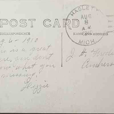 Real photo postcard of Pine Lake on July 4th, 1910. Postally used, 1910 Haslett postmark. Photo by Lansing photographer Bovee.
