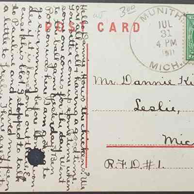 Postcard of the Leslie High School, or Union School, in Leslie, Michigan. Postally used, 1911 Munith postmark.