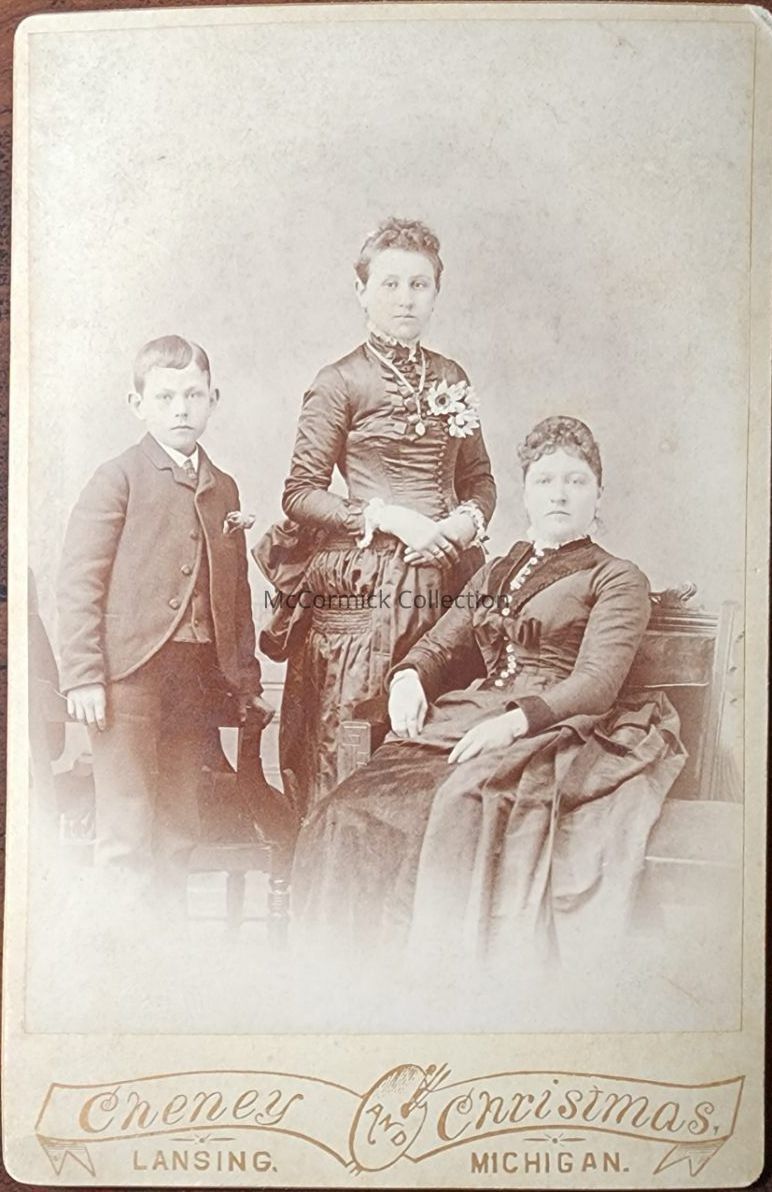 Cabinet card photograph of an unidentified family by Lansing photographer Cheney and Christmas.