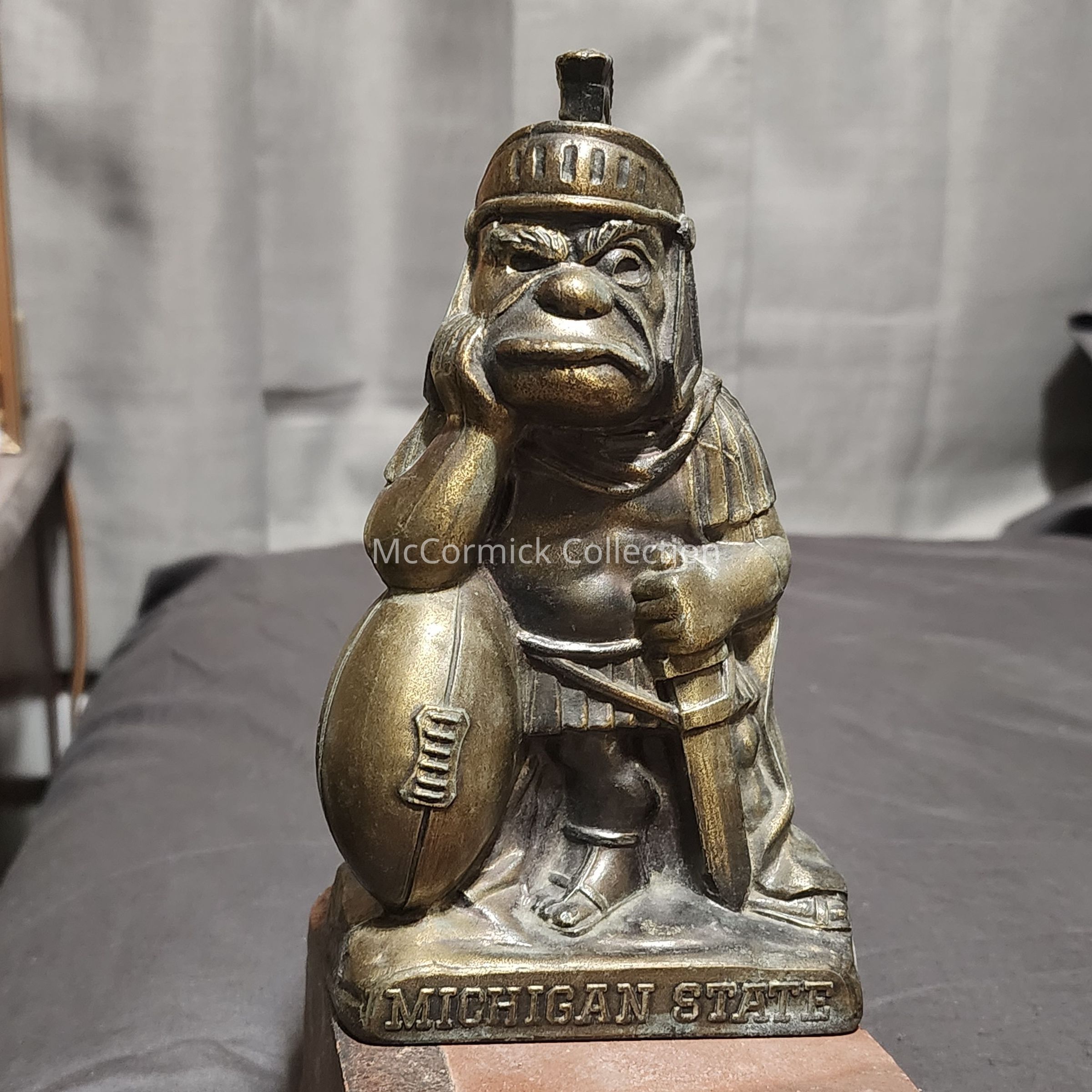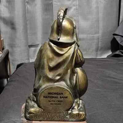 A vintage metal bank for Michigan State University Spartans distributed by Michigan National Bank of Battle Creek.