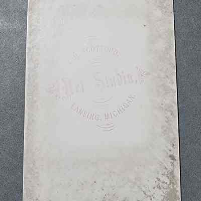 Carte de visite photograph of an unknown girl by Lansing photographer John Harvey Scotford. Circa 1877-81.