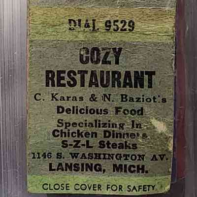 Cozy Restaurant, Lansing, Mich., Matchbook