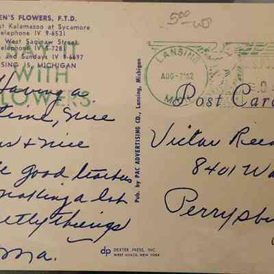 Advertising postcard for Belen's Flowers of Lansing, Michigan.