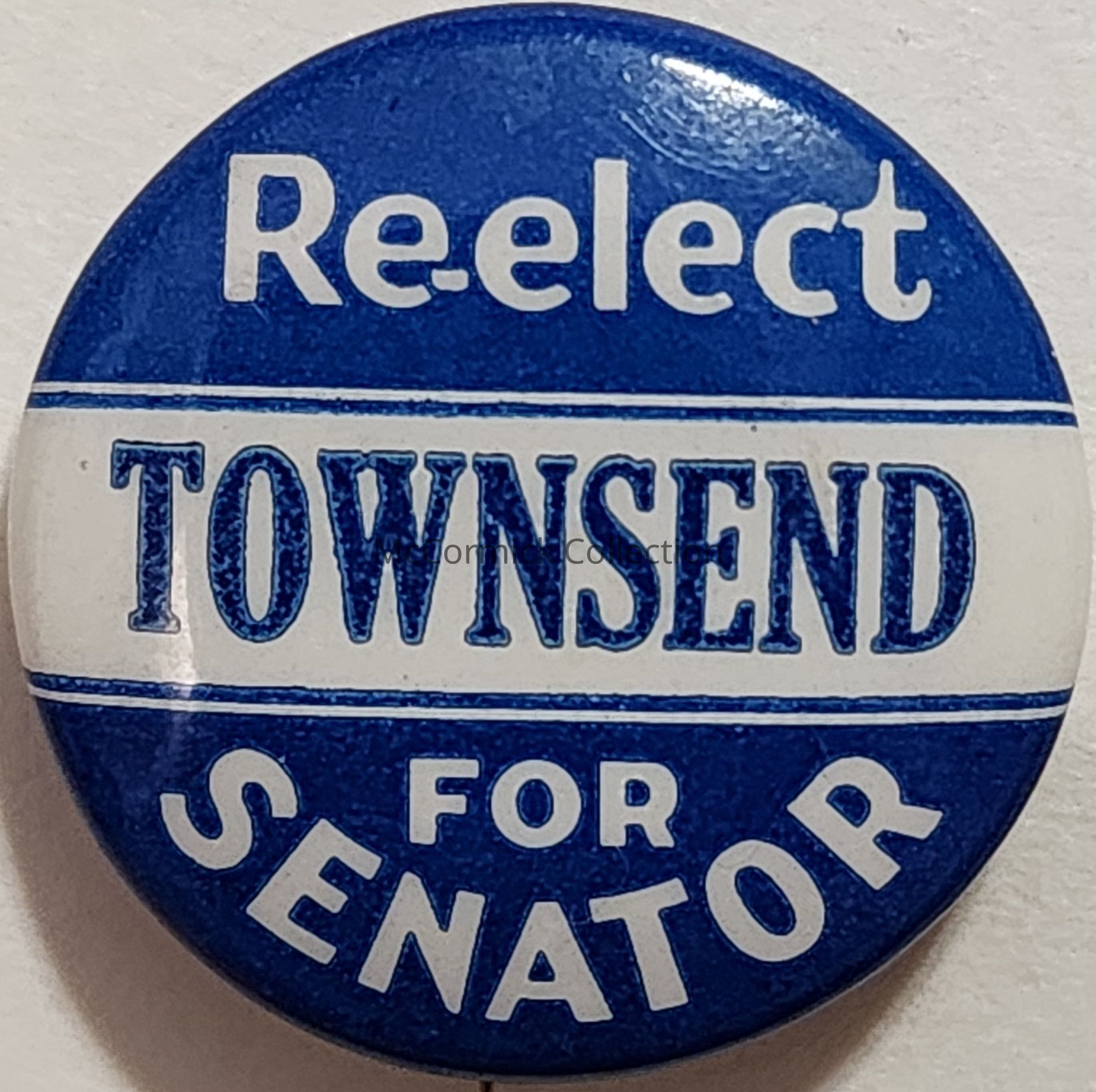 A blue and white political button for Charles Townsend for U.S. Senator from Michigan.