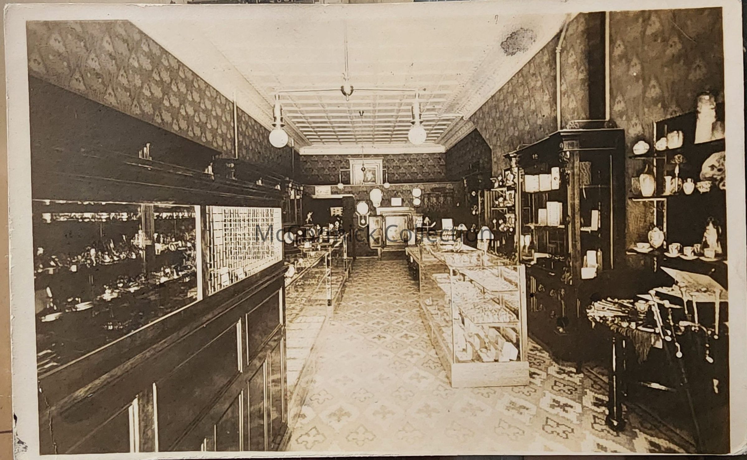 Real photo postcard of the interior of a store at 208 South Washington Ave., Lansing. Postally used, 1910 Lansing postmark. Message signed by Harry Oaks.