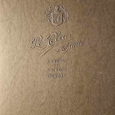 Folder frame mounted double pair of photographs of two unidentified women by Lansing photographer LeClear.