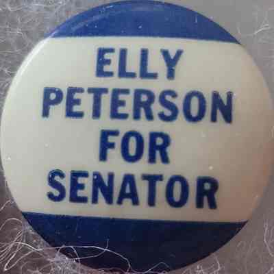 A 7/8" blue and white political button for Elly Peterson for United States Senator, 1964.