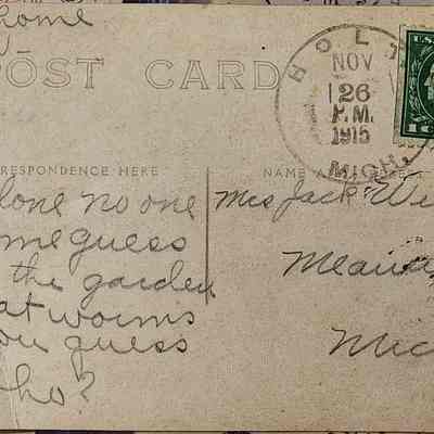 Real photo postcard of an unidentified woman, postmarked 1915 Holt, Michigan.