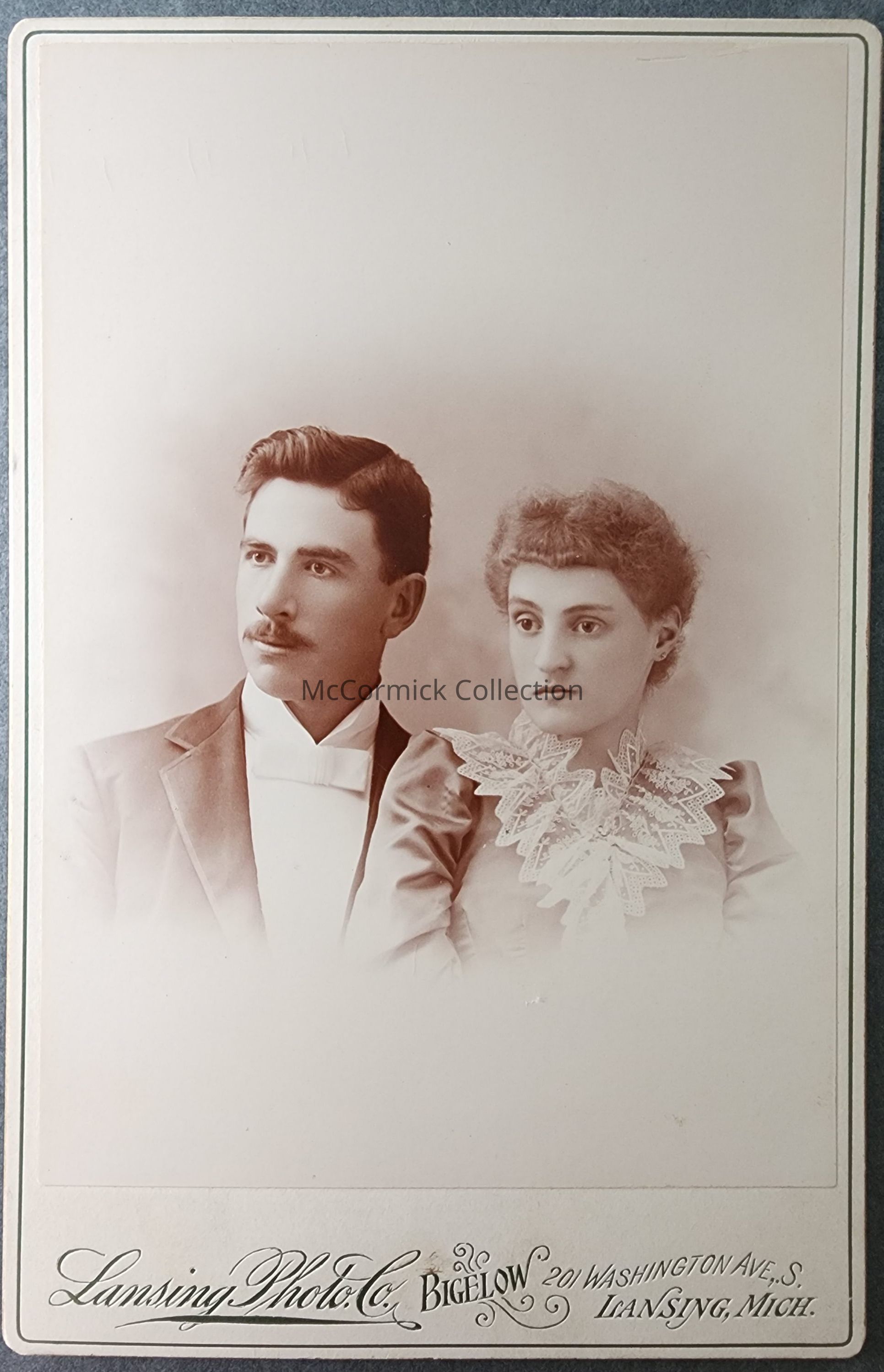 Cabinet card photograph of Bert and Jean (no last name given) by Lansing photographer Bigelow, circa 1893-95.
