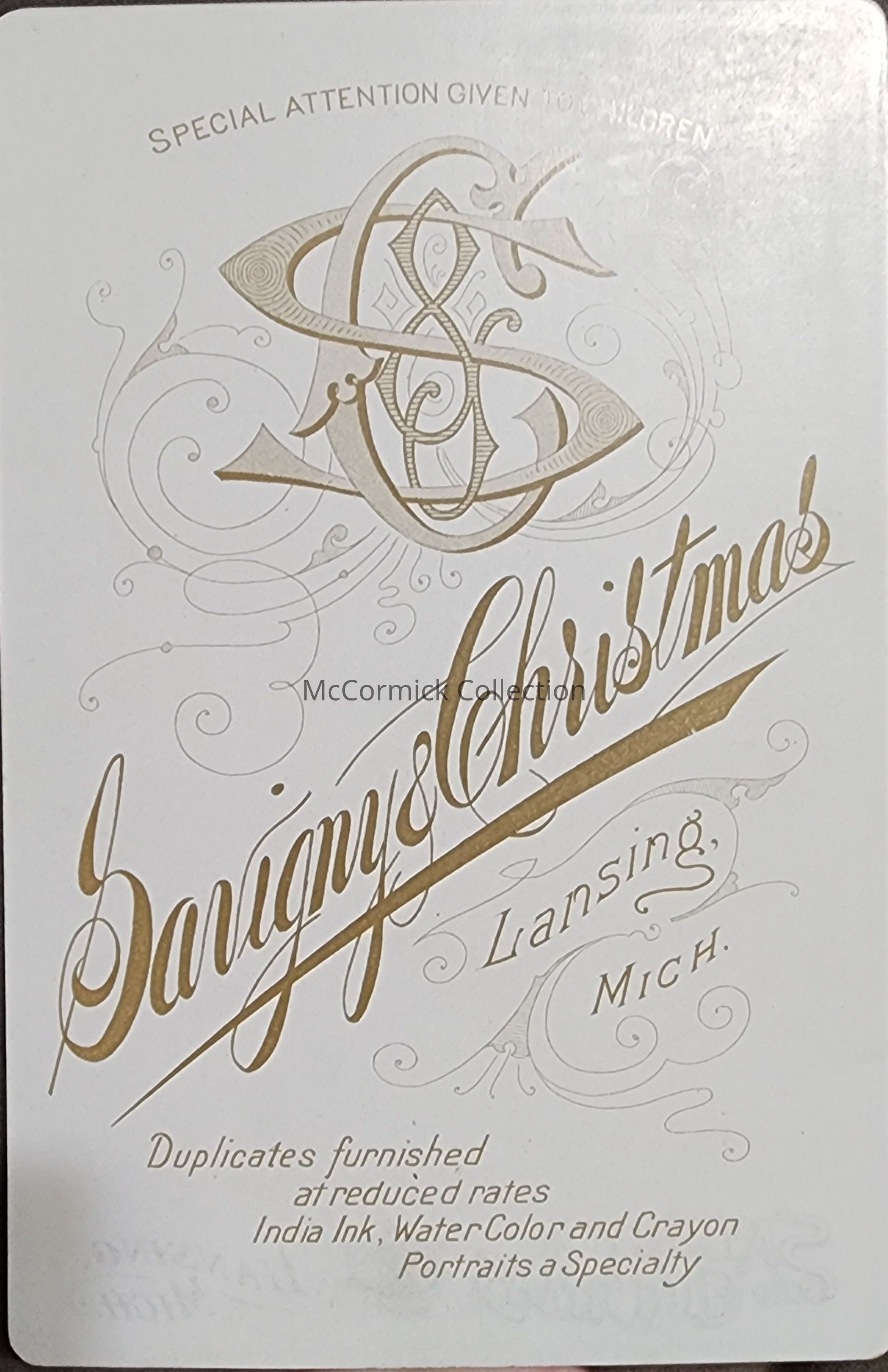 Cabinet card photograph of an unidentified man by Lansing photographer Savigny and Christmas.