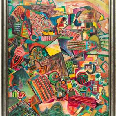 Abstract painting with great impasto and very colorful. Dated 1967 by artist Jack Faxon, then a State Representative and later longtime State Senator. The painting is framed behind glass as Faxon had it. Acquired through DuMouchelles Auctions in Detroit from the Faxon estate, 2023.Type of Painting