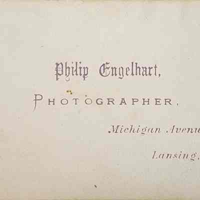 Carte de visite photograph of an unidentified woman by Lansing photographer Philip Engelhart. CDV split in half.