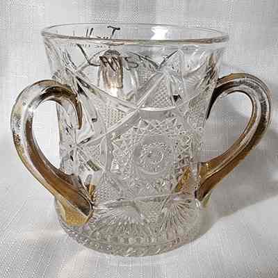 Early American Pressed Glass three handled cup from the Howard Furniture Company of Lansing.