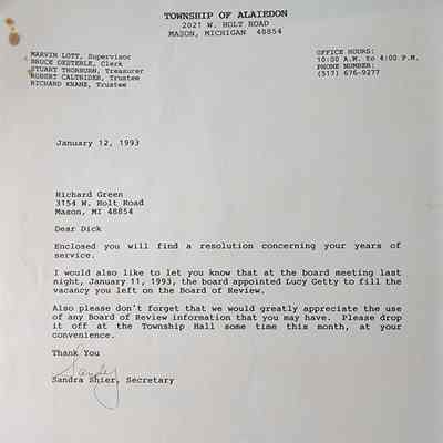 Archive pertaining to Richard Green in Alaiedon Township Board of Review. From Green Estate.