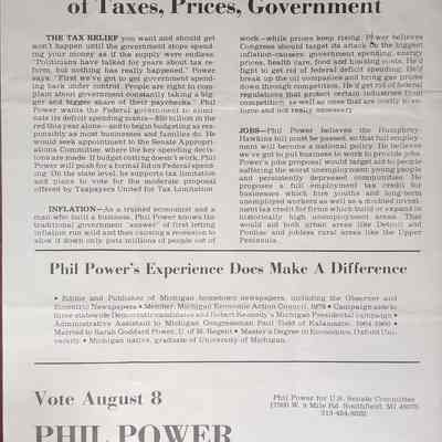 A 1970s campaign flier for Phil Power for U.S. Senate.