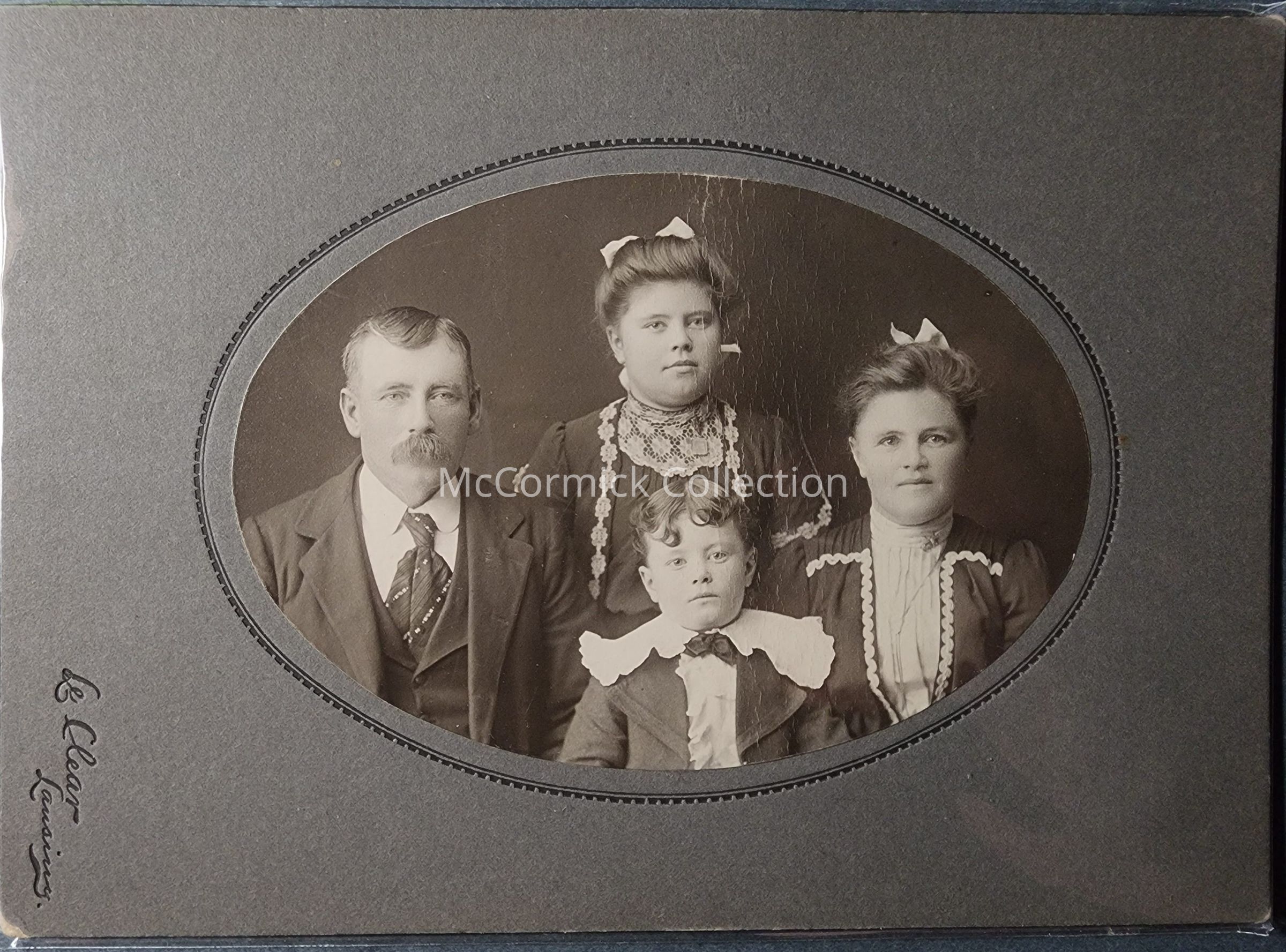 Card mounted photograph of an unidentified family by Lansing photographer LeClear, circa 1900s.