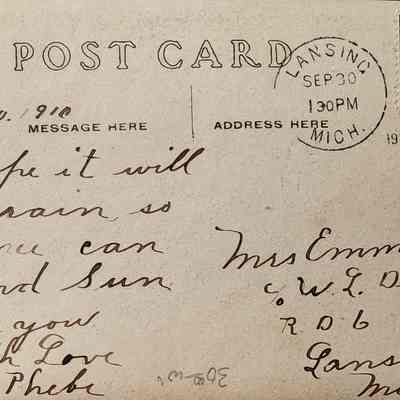 Real photo postcard from a historic negative of the southeast corner of Michigan and Washington Avenues in Lansing. Shows the City Bookstore. Negative number is 90-21. Produced by F.N. Bovee. Postally used, 1910 Lansing postmark.