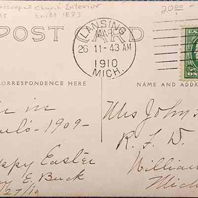 Real photo postcard of the interior of St. Paul's Episcopal Church of Lansing, Michigan. Postmarked Lansing 1910.