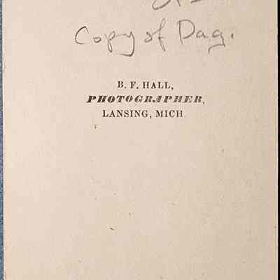 Carte de visite photograph of an unidentified man by Lansing photographer Hall. Labeled as a copy of a daguerreotyoe.