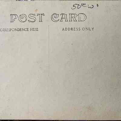 Real photo postcard of the Capitol City Camp Team 6411 posed on the steps of the Carnegie Library in Lansing. By Bovee. Potally unused.