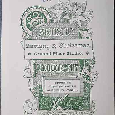 Cabinet card photograph of Jessie Bramm by Lansing photographer Savigny and Christmas.