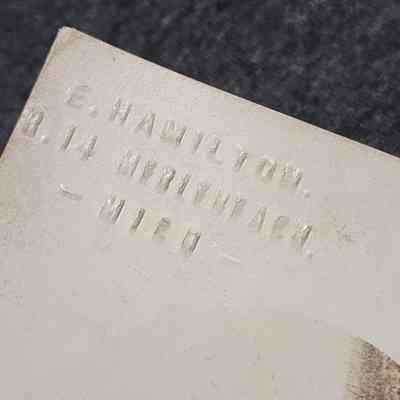Real photo postcard of the Merle Beach Interurban line near DeWitt, north of Lansing, Michigan. Photo by Bovee, Bovee stamp box stock. Postally unused. Blind stamp identifies the location and lists "E. Hamilton, R14, Merlebeach, Mich."