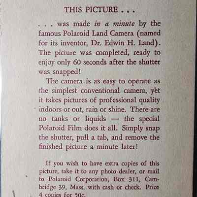 Snapshot photograph of four unidentified people at an event tied to REO Motor Car Co. in Lansing. Polaroid frame has REO advertising.