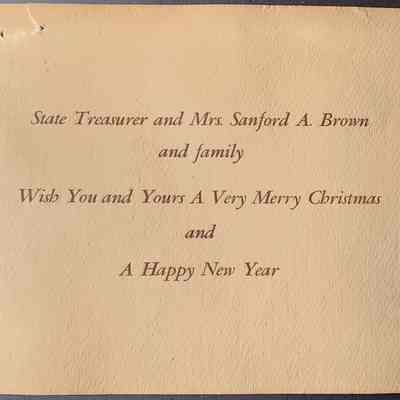 Christmas card, 1961, from Michigan State Treasurer Sanford A. Brown. From the Nancy Waters Collection.