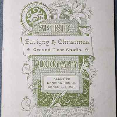 Cabinet card photograph of Lucy Lorenz by Lansing photographer Savigny and Christmas.