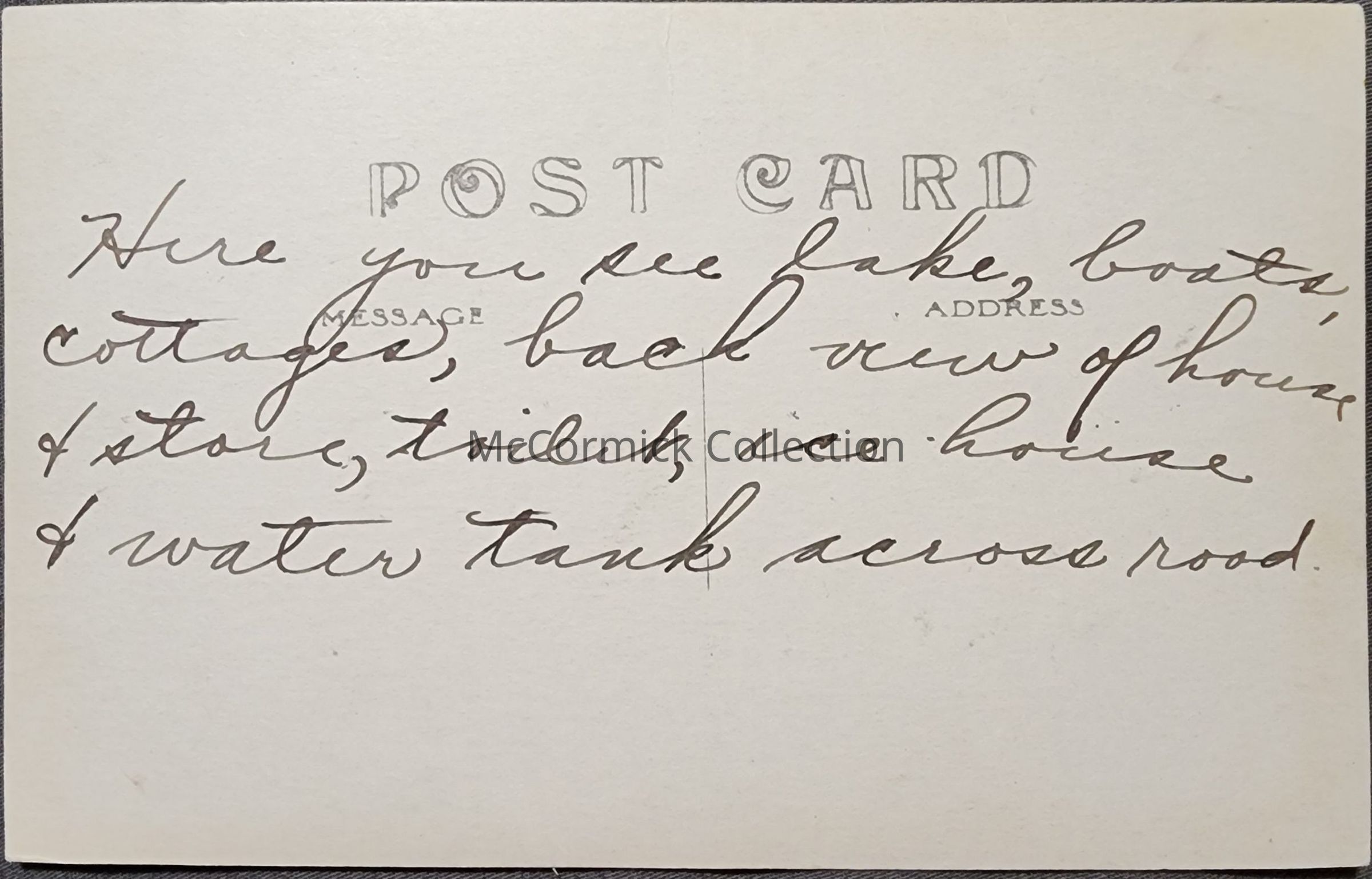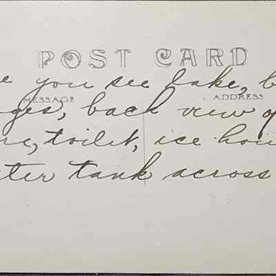Real photo postcard of Lake, Michigan. Shows Crooked Lake and the railroad Watertown in the background. Postally unused.