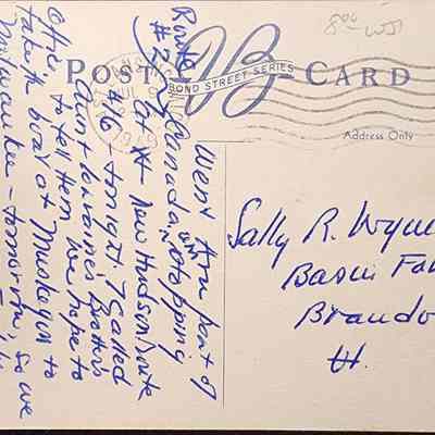 Postcard of an unidentified school in East Lansing, Michigan. Possibly Libery Hyde Bailey School. Postally used, 1949 Lansing.