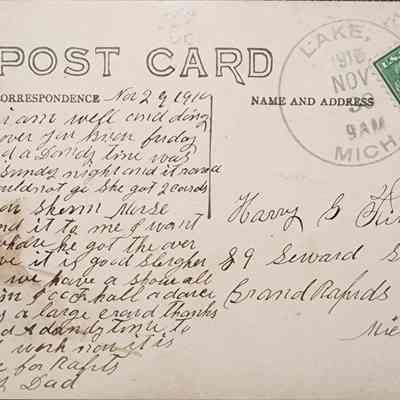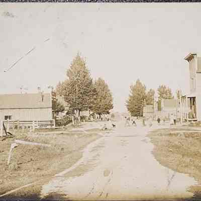 Real photo postcard of downtown Brinton, Michigan, now a ghost town. Postally used, 1910 Lake postmark. Located south of Lake in Isabella County.