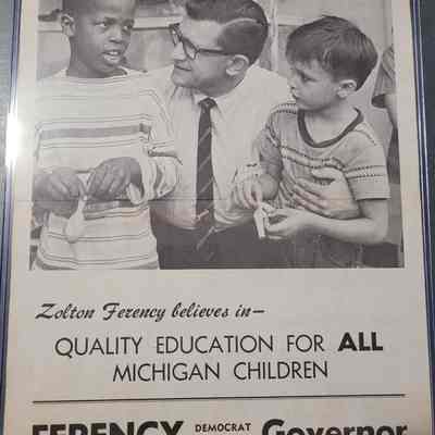 A 1966 coattail political flier for Zolton Ferency for Governor and G. Mennen Williams for U.S. Senate.