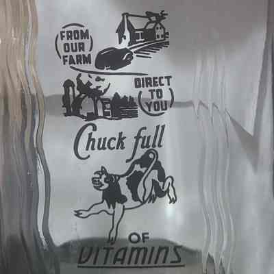 A half gallon bottle with black pyro from the Kahres Dairy Farm from Holt and Lansing, Michigan, with the black slogan of "From our Farm Direct to You / Chuck full of Vitamins."