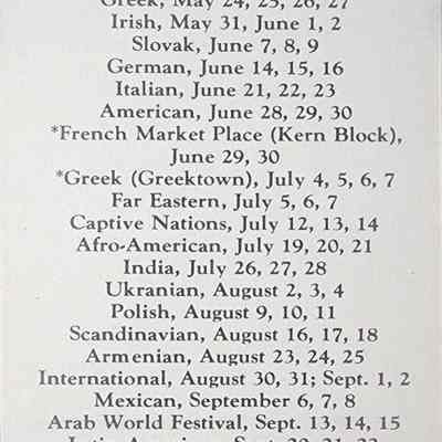 A card for Gov. William Milliken with schedule for Detroit Ethnic Festivals.