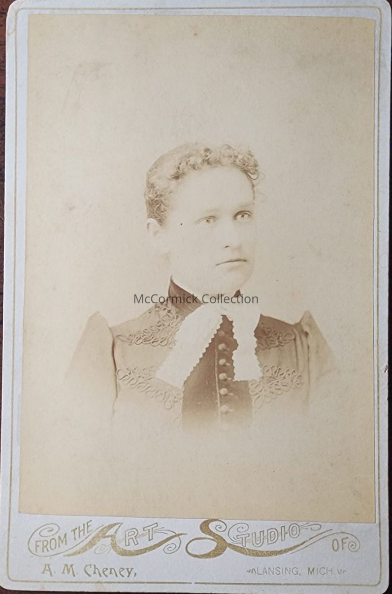 Cabinet card photograph of an unidentified woman by Lansing photographer Cheney.