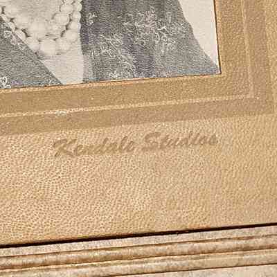 Folder frame mounted photograph of an unidentified woman by Lansing photographer Kendale Studios.