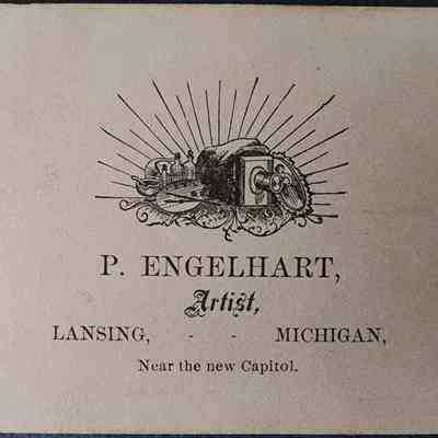 Carte de visite photograph of an unidentified man by Lansing photographer Engelhart, circa 1864-1876. Imprint reads: Near the new Capitol.