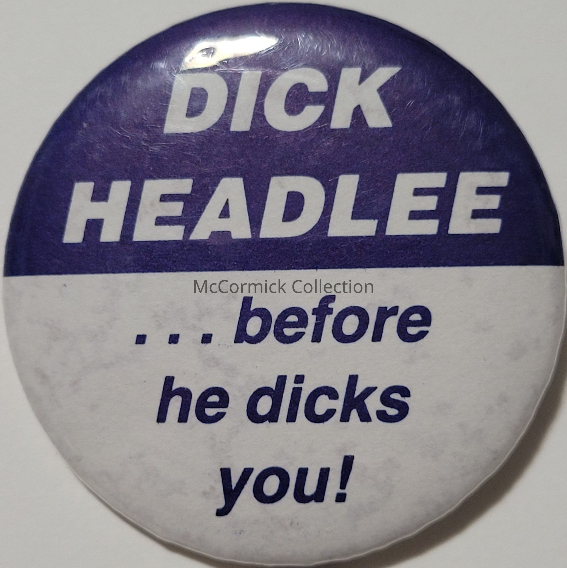 Political button, 2.25", reading: Dick Headlee...before he dicks you!