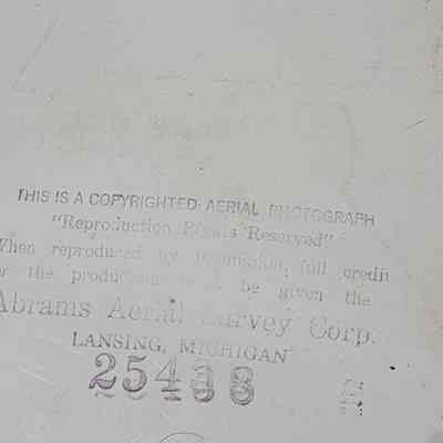 Large format aerial photograph of Downtown Lansing, Michigan, by Abrams Aerial Photography of Lansing. From Sophia Tessaris Estate. Hotel Detroit is circled on the photo.