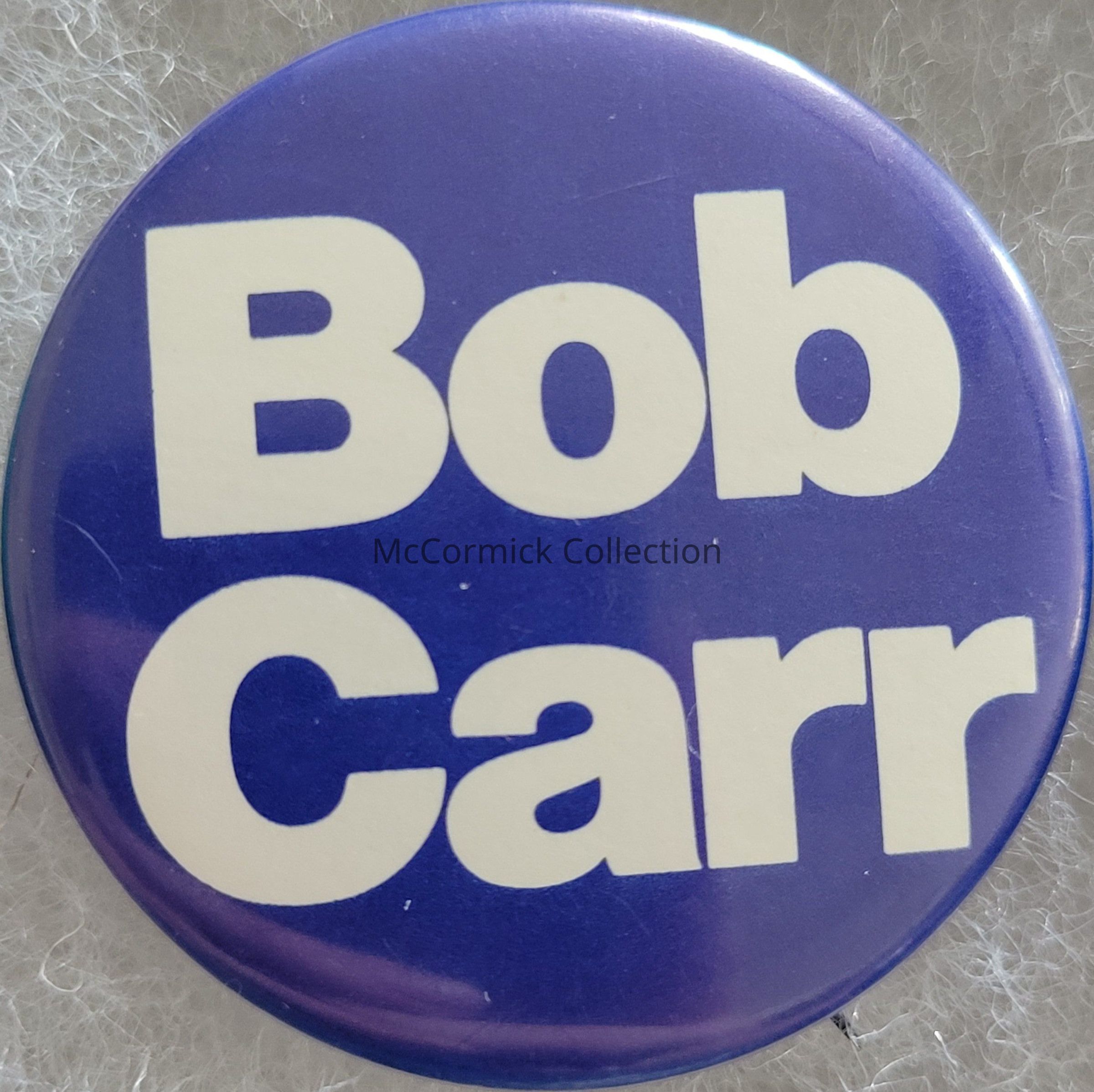 A 1.75" blue and white political button for Bob Carr for Congress, circa 1980s. Two.