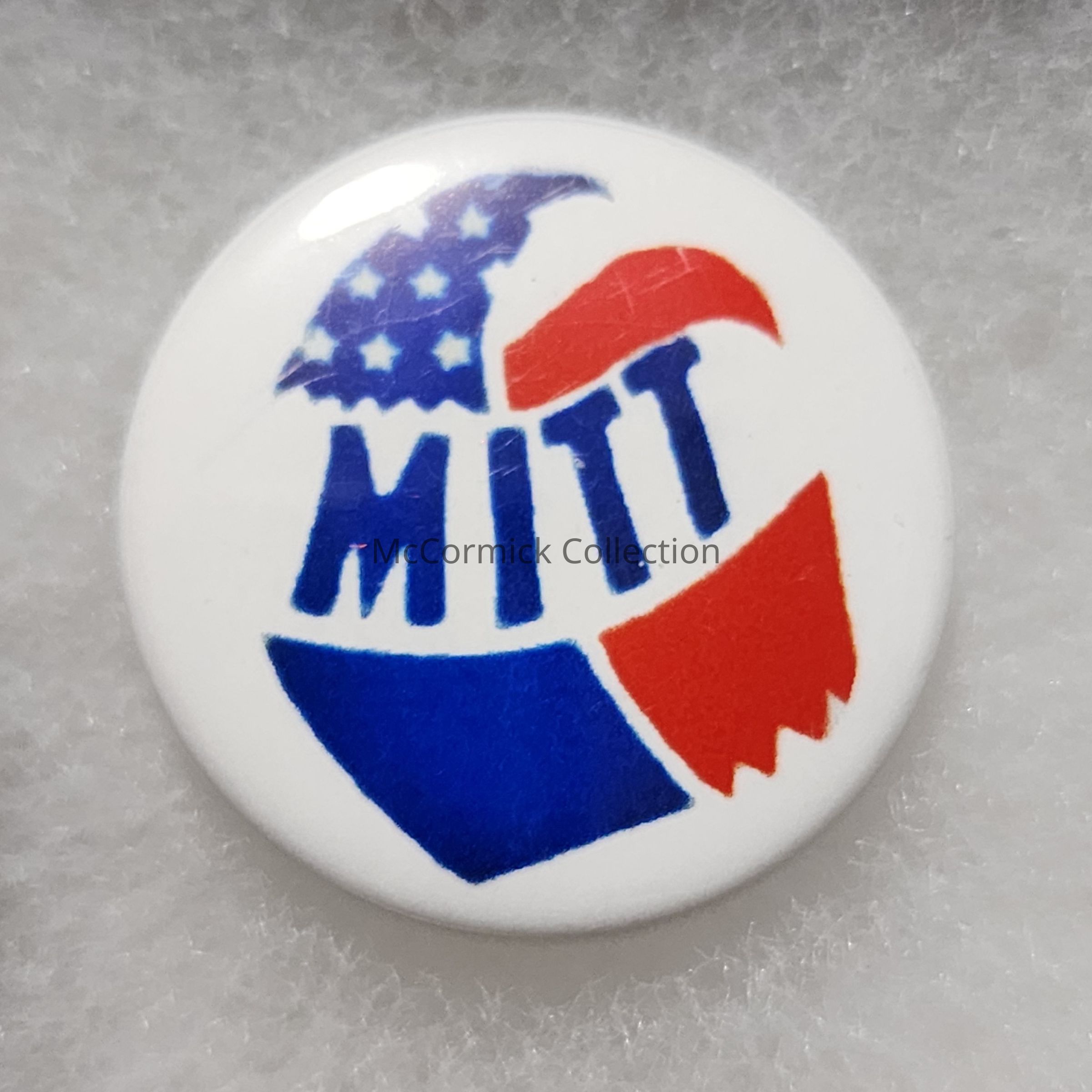 2.25" political button for Mitt Romney for President, 2012, featuring the eagle motif from George Romney's 1968 presidential campaign.